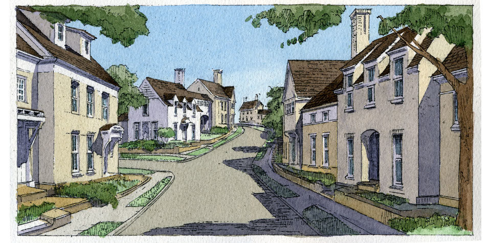 Hampstead was the first traditional neighborhood development to be built under Montgomery’s adopted SmartCode. Using the site’s natural features, the design includes three neighborhoods that differ in character while creating an interconnected community based on the discipline of the five-minute walk. A mixture of housing types gives shape to greens, plazas, and playgrounds designed to promote an active civic environment. Hampstead differs itself from many other traditional neighborhood in its commitment to the environment and sustainability. Aside from all the benefits of a typical New Urbanist neighborhood, Hampstead will be built with green building features including maximum energy efficiency, low maintenance, air quality, and water conservation. Residents will have options from local and reclaimed materials, to solar energy, and Energy Star qualified home plans. The Hampstead plan was designed to preserve the land's old growth trees, waterways, and natural terrain. It has a 5-acre working, organic farm located at the heart of the neighborhood. The production farm also offers community beds to its residents. The focus is to increase the availability of healthy, local produce in tune with the seasons and educate the wider community on the benefits of sustainable farming. In addition, over thirty percent of Hampstead's 416 acre master plan is protected as green space.