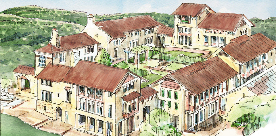 Hacienda Lagunas oferece uma visão regional para o nordeste de Panamá, já que propõe o desenvolvimento de dez aldeias pedestres e compactas, e a preservação duma proporção significativa do espaço aberto e agrícola. O sítio de 700 hectares, localizado adjacente à pequena cidade de Volcan, inclui uma histórica plantação de café, assim como também lagos, florestas, planícies e uma preservação de variada vida selvagem, famosa para observadores de aves. As aldeias repousam nos pontos geograficamente significativos do sítio, unidas por uma extensa rede de caminhos pedestres e equestres, que também conectam com lagos, os picos das montanhas e plantações de café. Estas áreas naturais vão ser preservadas e melhoradas, com a plantação de café operacional, e os habitats da vida selvagem separados como reservatórios. O Town Center oferece o emprazamento urbano mais denso, apresentando uma variedade de tipologias de casas, lojas, oficinas e edifícios cívicos. Desenhado para ser um destino vibrante e pedestre, o Town Center também inclui uma serie de majestosos espaços cívicos, incluindo uma praza central e um anfiteatro com vista ao lago. Uma Rua Principal arborizada serve como a coluna central, alinhada com edifícios “flexíveis” que apresentam lojas e restaurantes nos andares inferiores e oficinas e apartamentos nos andares superiores. Blocos de unidades live/work, casas geminadas, chalés e casas ficam no norte e no sul desta Rua Principal, com a maioria dos blocos apresentando jardins comunitários inferiores para uso do bairro. Imóveis maiores circundam os blocos, oferecendo amplias vistas e lotes espaçosos a curta distância da Rua Principal e das áreas cívicas primarias. Aldeias pedestres e vilas se localizam nos pontos cênicos do sítio, com cada emprazamento especificamente desenhado para seguir a topografia gentil do sítio e tomar vantagem das vistas e amenidades naturais. A arquitetura dos assentamentos vai ser inspirada por os precedentes do vernáculo local, e reconhecerá as temperaturas frescas e as brisas da área usando estratagemas naturais de refrigeração. Alpendres, galerias e outros espaços exteriores cobertos vão oferecer proteção da chuva e também espaços para reuniões ao ar livre durante o ano tudo. Adicionalmente, uma porção significativa dos edifícios vai ser construída com estratagemas de construção ambiental verde, para minimizar o impacto na terra e oferecer um modelo de eficiência energética.