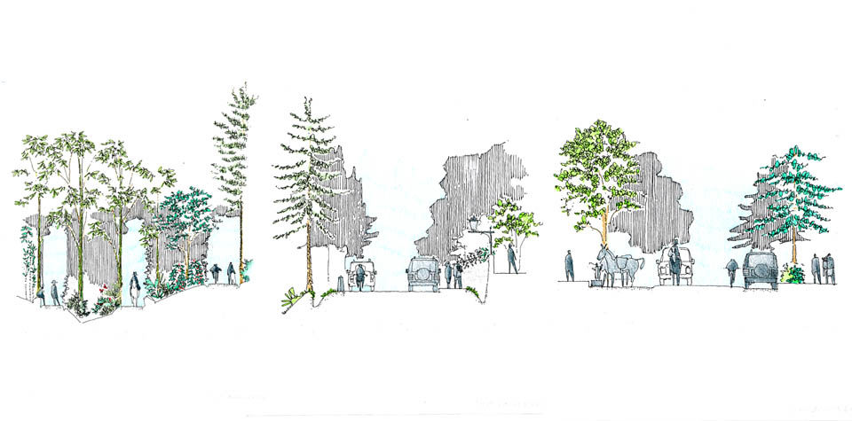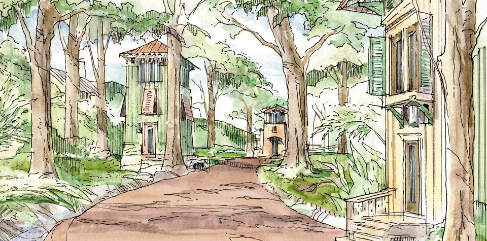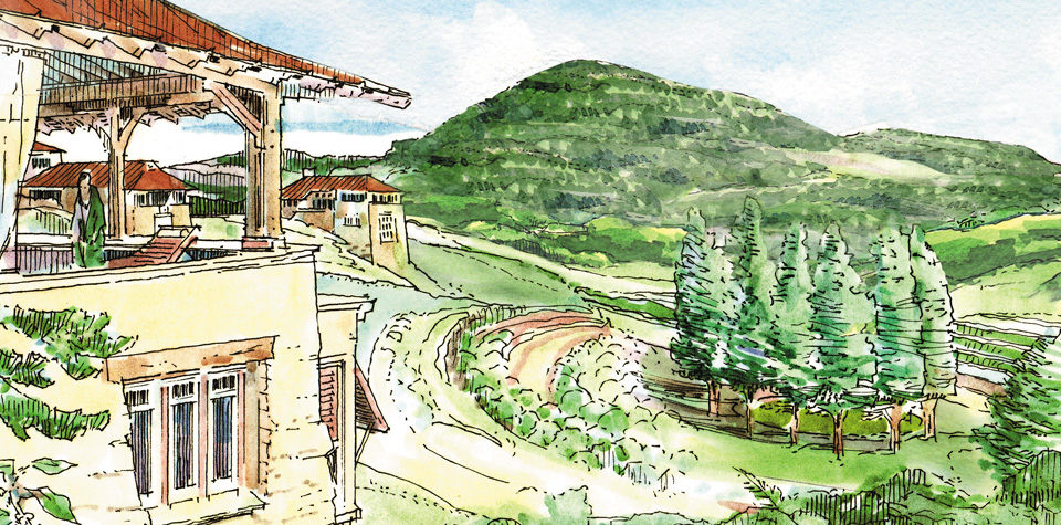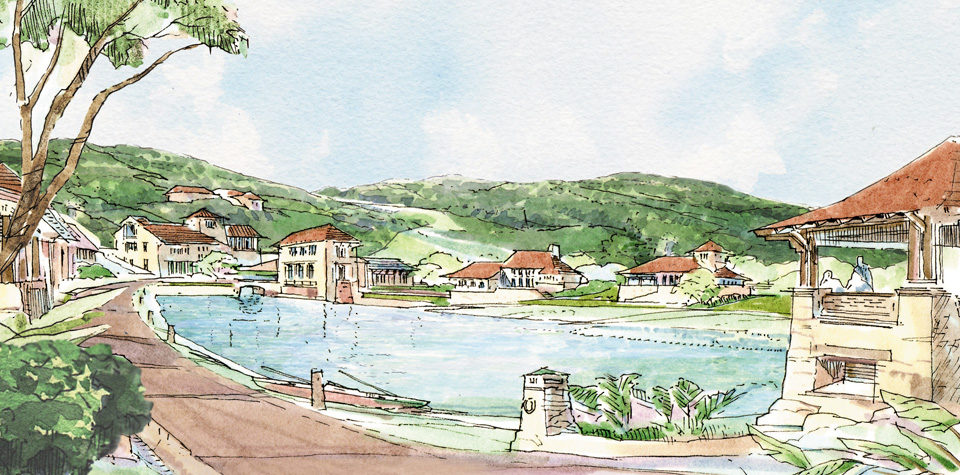 Projetado para ser um vibrante destino para pedestres, o Town Center também inclui uma série de majestosos espaços cívicos, incluindo uma praça central e um anfiteatro com vista para o lago. A oeste do centro da cidade, vilas e aldeias de pedestres estão localizados em pontos cênica do local, com cada assentamento projetado especificamente para seguir topografia suave do site e tirar partido das vistas e amenidades naturais.